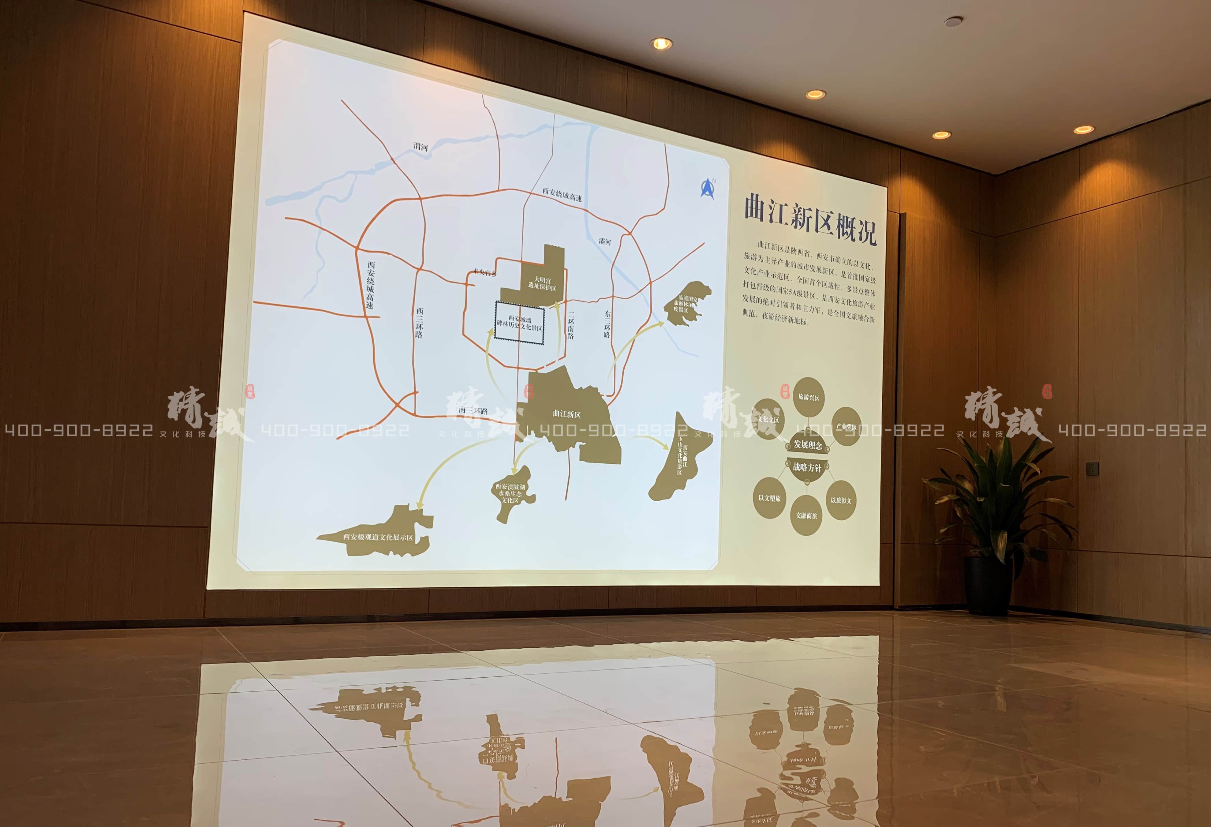 游客休息區(qū)的拼接大屏播放著曲江新區(qū)精彩紛呈的文旅項(xiàng)目影片,一遍遍地釋放著這座城市無與倫比的文化魅力。